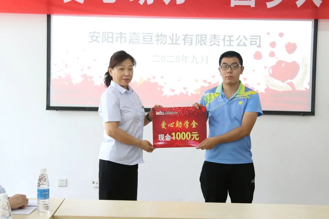 十年寒窗苦,金榜题名时。9月16日下午3点,安阳市嘉亘物业有限责任公司组织开展“爱心助力,圆梦大学”助学捐赠活动。助学捐赠仪式在公司培训室举行,公司领导、受助职工和学生代表参加了此次活动。